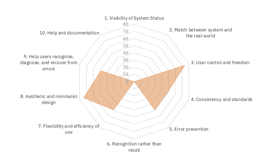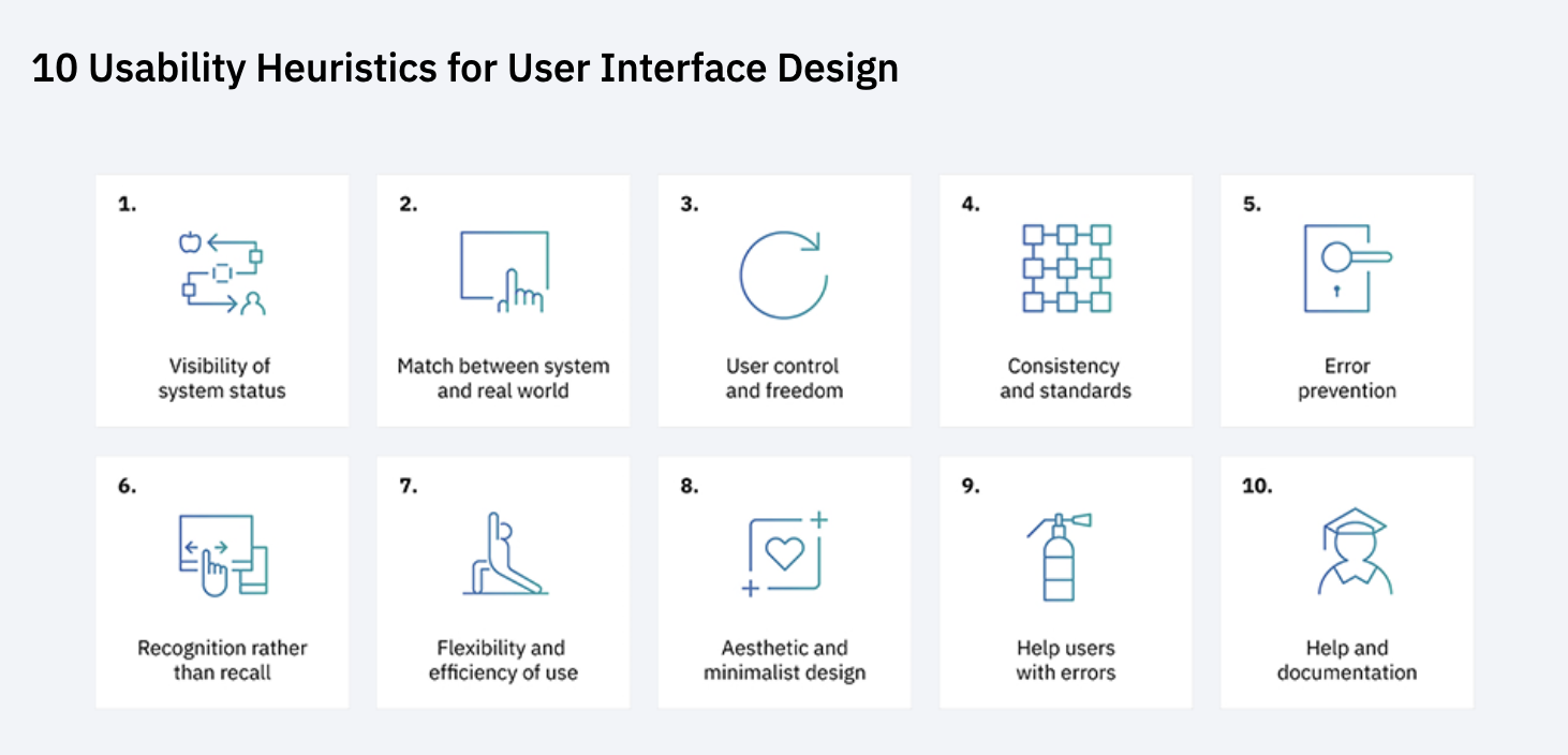 heuristic evaluation — reviewing key user flows against Nielsen's 10 usability heuristics,